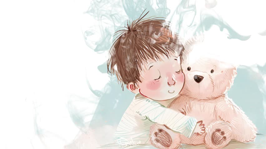 • A Kids Themed Video Menue Background Of A Stuffed Doll With Teddy Bears and a Yellow Background